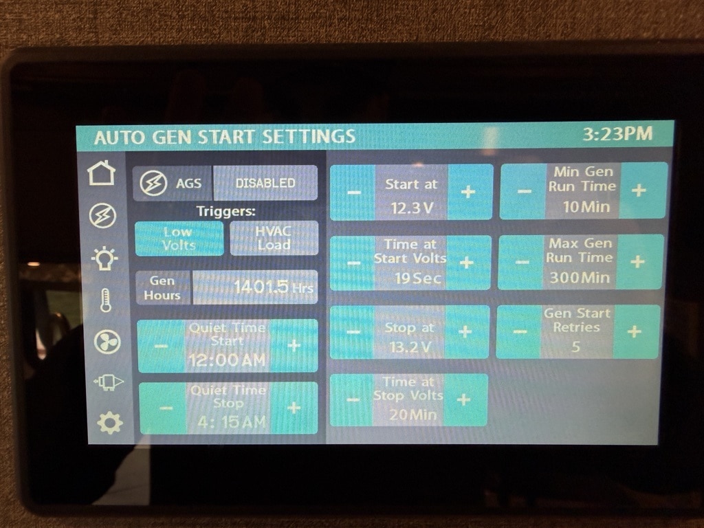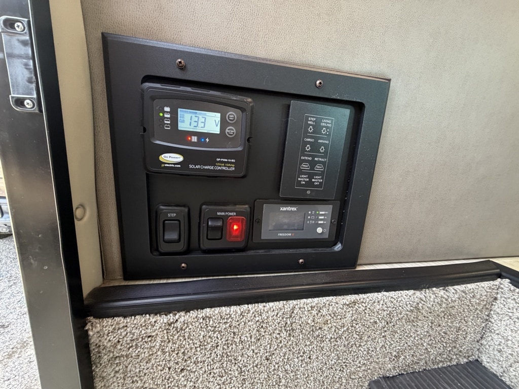 Electrical System: Equipped with an Onan RV QD 6000 diesel generator, a 1,800-watt inverter, and a 100-watt solar charging system.