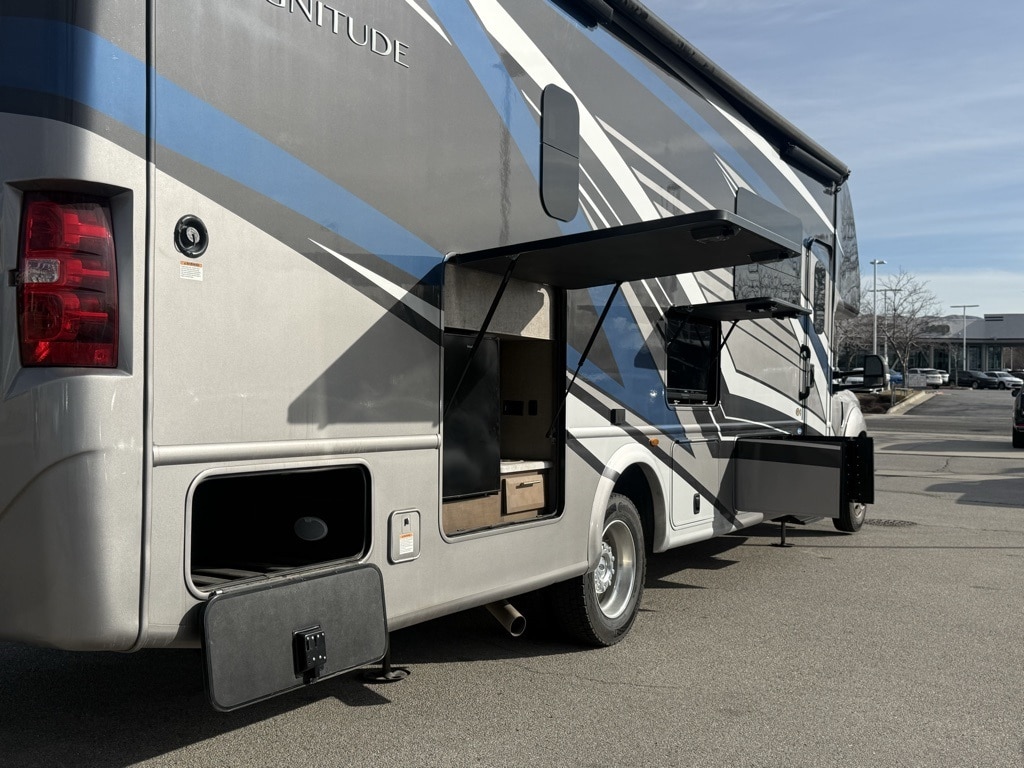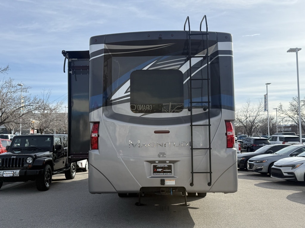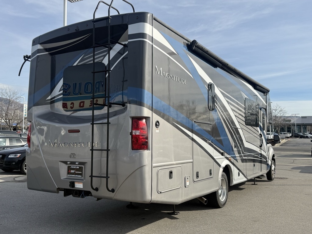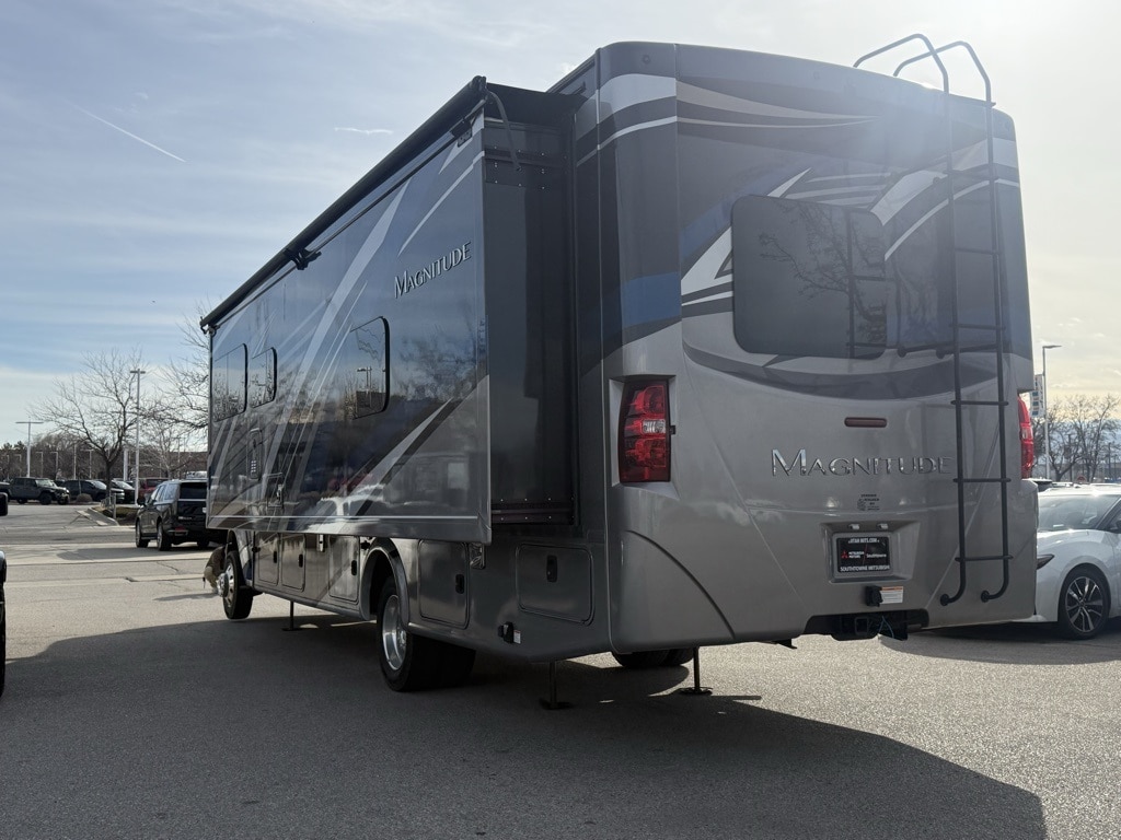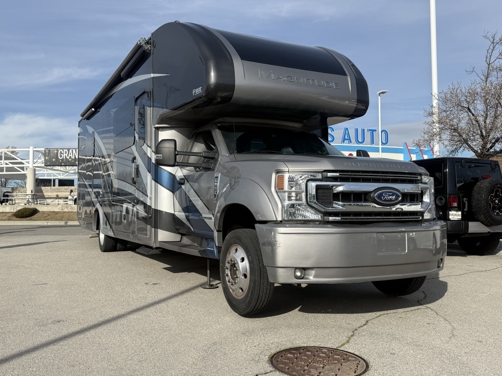 The 2021 Thor Motor Coach Magnitude SV34 is a Super C diesel motorhome built on a rugged Ford F-550 4x4 chassis. It is designed for off-road capability and high towing capacity, featuring a 6.7L Power Stroke V8 turbo diesel engine that delivers 330 HP and 825 lb-ft of torque.