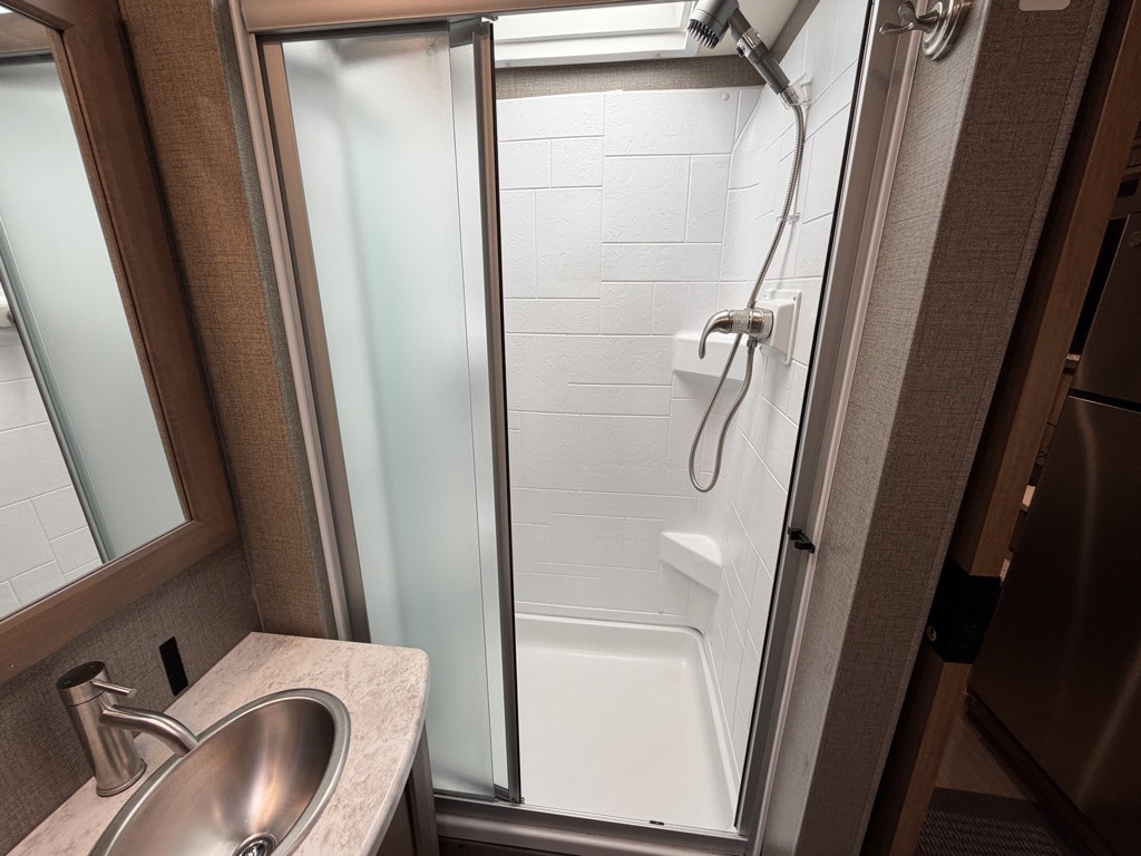 Handling: A user review on Facebook notes the motorhome is "very quiet and smooth," easily maintaining speeds of 75-80 mph even on steep grades.