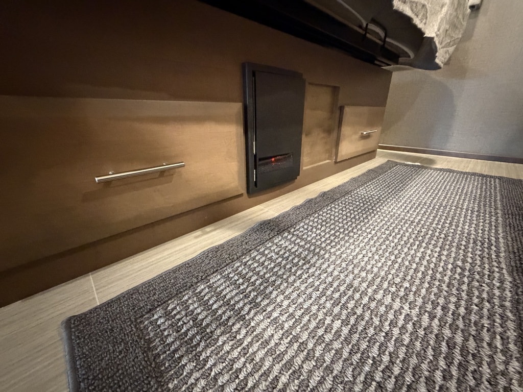 Capacities: A 10,000-lb trailer hitch, 65-gallon fresh water tank, and 40-gallon each for gray and black water.