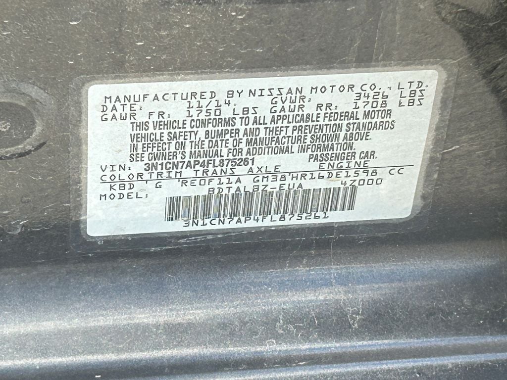 Amethyst Gray 2015 Nissan Versa 1.6 SV FWD CVT with Xtronic 1.6L I4 DOHC 16V