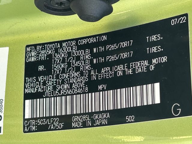 2022 Toyota 4Runner TRD Pro 4WD 5-Speed with ECT 4.0L V6 DOHC 24V 4WD.